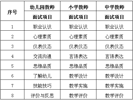 各学段教师资格考试面试项目具体如下(中职教师面试项目同中学教师):