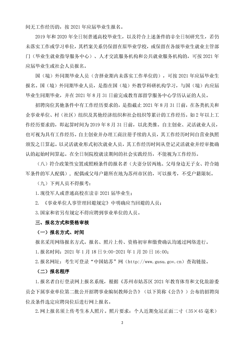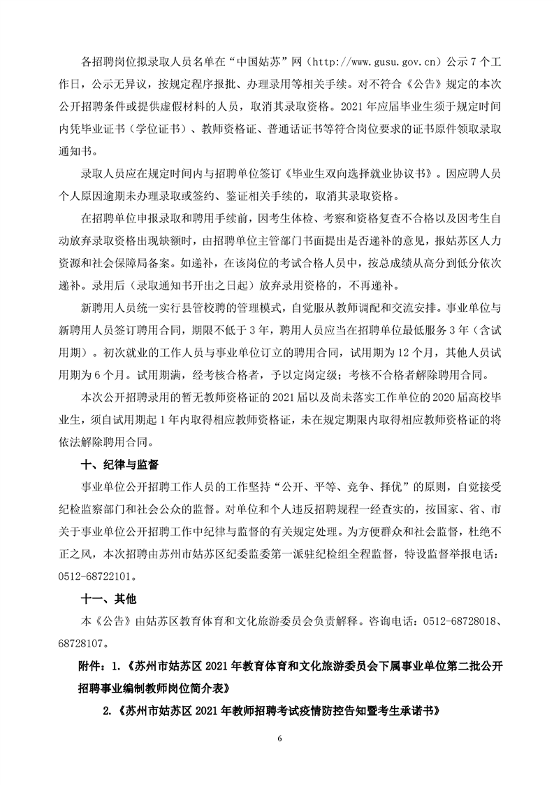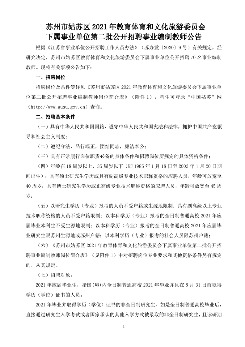 附件1:苏州市姑苏区2021年教育体育和文化旅游委员会下属事业单位第二批公开招聘事业编制教师岗位简介表