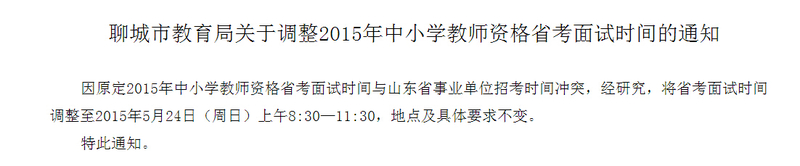 关于调整2015山东聊城市中小学教师资格面试时间通知