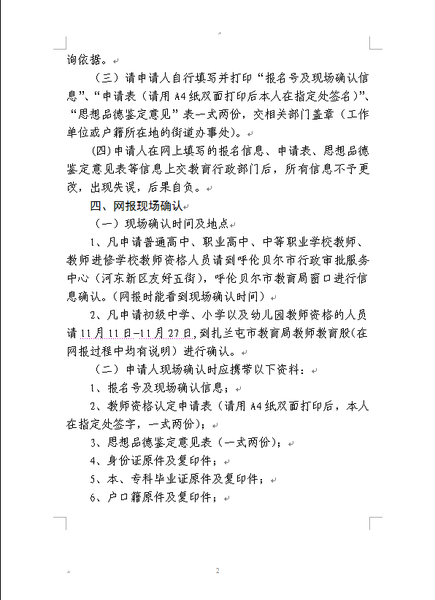 2015秋季内蒙古扎兰屯市教师资格认定通知