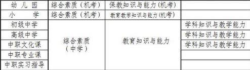 (1)申请中等职业学校专业课和中等职业学校实习指导教师资格的人员参加高级中学教师资格考试综合素质和教育知识与能力两科考试。专业知识与教学能力考试,主要结合面试进行考查,必要时进行笔试。